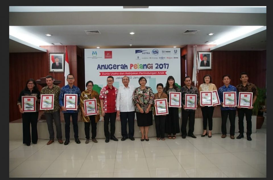 Penghargaan Anugerah Pelangl 2017 bertema ‘Dunoa Usaha dan Kebijakan Perlindungan Anak’, ini diserahkan oleh APSAI dengan didampingi Deputi Bidang Tumbuh Kembang Anak Kementerian Pemberdayaan Perempuan dan Perlindungan Anak (KPPPA) Lenney N. Rosalin, yang mewakili Menteri PPPA Yohana Yambise.