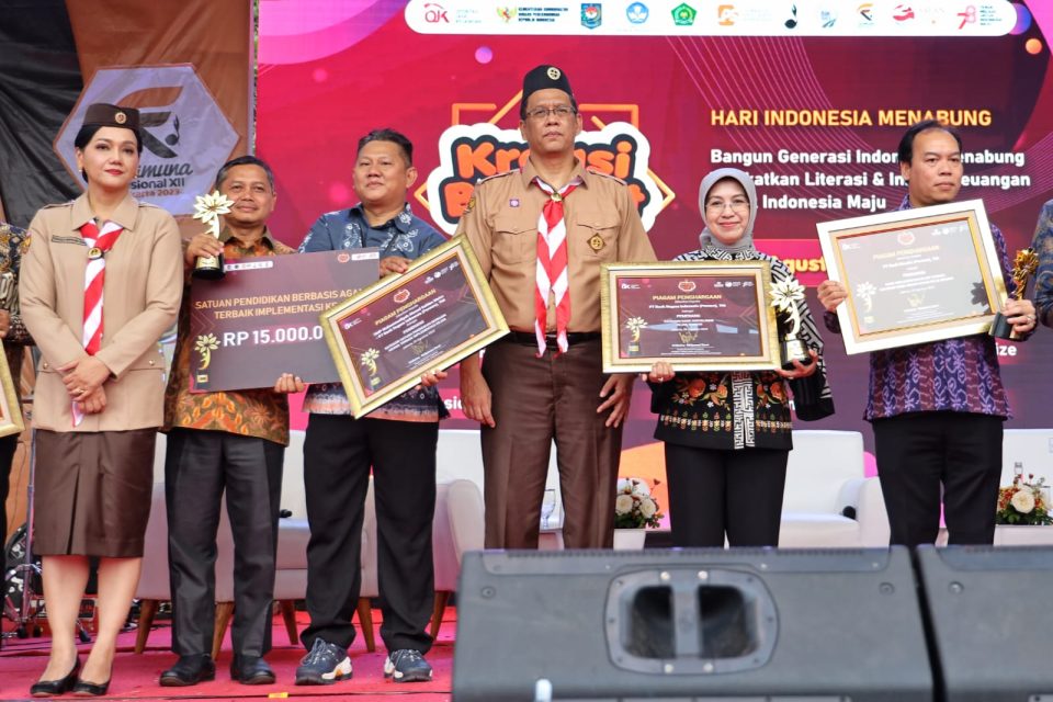 Hadir secara langsung dalam acara, Ketua Dewan Komisioner OJK Mahendra Siregar, Ketua Dewan Komisioner Lembaga Penjamin Simpanan (LPS) Purbaya Yudhi Sadewa, dan Ketua Kwarnas Gerakan Pramuka Budi Waseso.