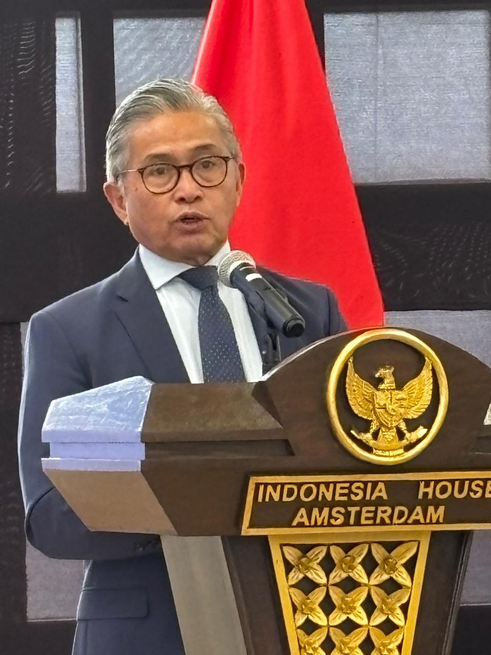 Lagu Indonesia Raya berkumandang di lokasi acara pada pukul 09.00 waktu setempat dilanjutkan dengan sambutan Duta Besar Republik Indonesia untuk Kerajaan Belanda, H.E. Mayerfas.