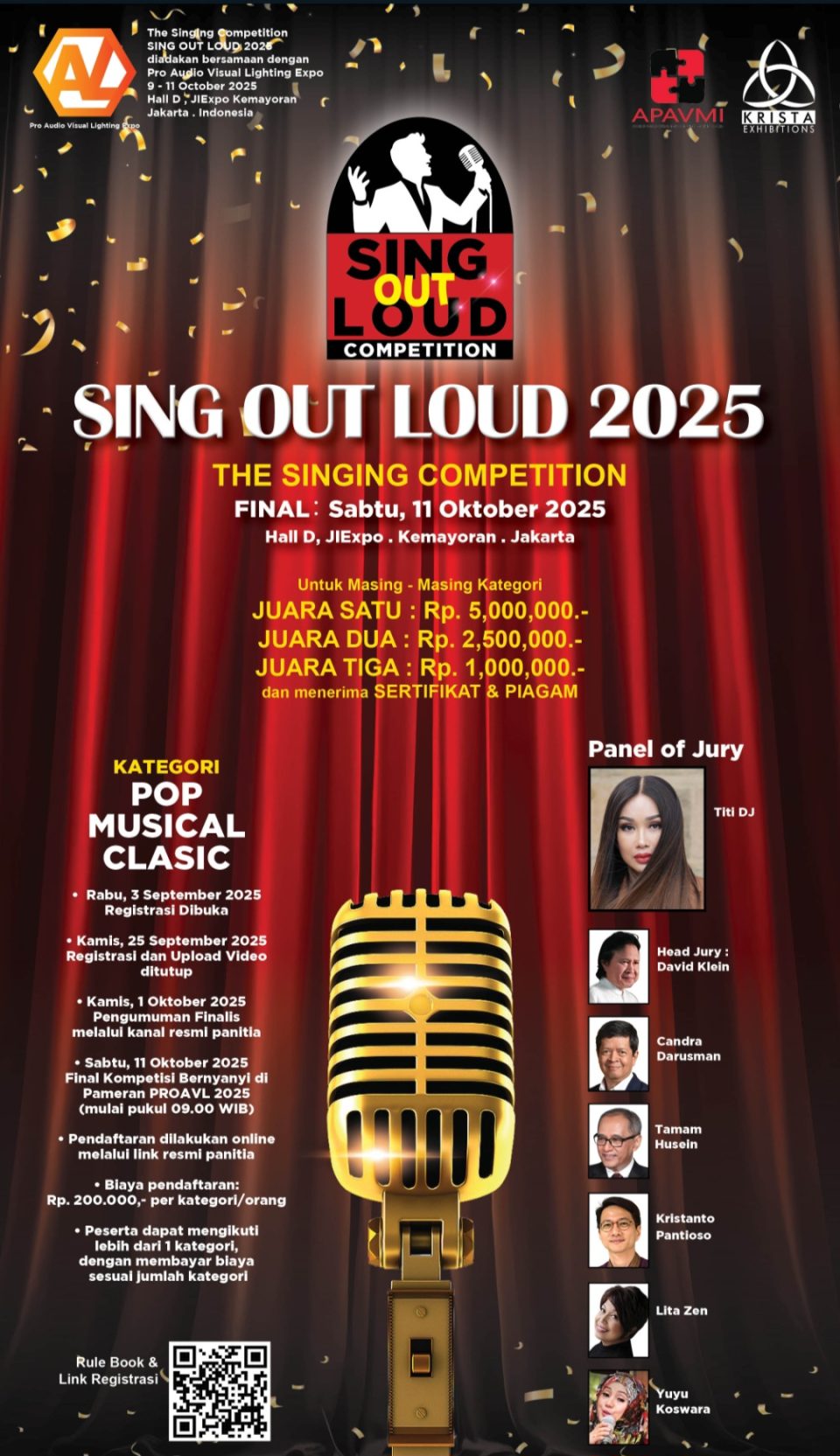 JAKARTA (possore.id) — SING OUT LOUD di pameran PRO AVL 2025! Krista Exhibitions menghadirkan kompetisi menyanyi yang paling dinanti tahun ini, memberikan kesempatan bagi talenta vokal muda maupun profesional untuk menampilkan suara emas mereka.