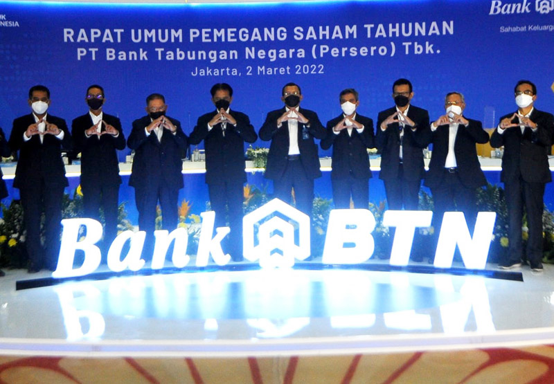 “RUPST Bank BTN memutuskan penggunaan laba bersih tahun buku 2021 akan dipergunakan sebesar 10% dibagikan sebagai dividen dan sebesar 90% ditetapkan sebagai laba ditahan,” kata Direktur Utama Bank BTN Haru Koesmahargyo dalam konferensi pers usai RUPST Bank BTN, Rabu (2/3/2022).