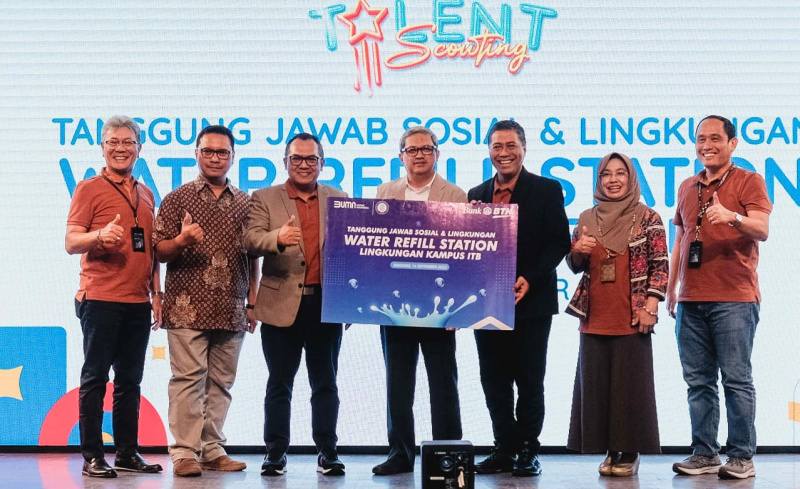 JAKARTA (Possore.id) -Direktur Human Capital, Compliance, & Legal PT Bank Tabungan Negara (Persero) Tbk. Eko Waluyo (ketiga kiri) bersama Direktur Consumer Bank BTN Hirwandi (ketiga kanan) menyerahkan bantuan Water Refill Station untuk Kampus Institut Teknologi Bandung kepada Wakil Rektor Bidang Keuangan, Perencanaan, dan Pengembangan Muhamad Abduh, di Kampus ITB, Bandung. Adapun, bantuan Water Refill Station tersebut akan ditempatkan di Kampus ITB Jatinangor untuk mempermudah para mahasiswa dan dosen mengakses air bersih yang dapat langsung diminum. Pemberian bantuan tersebut juga sejalan dengan misi Bank BTN mendukung dunia pendidikan sekaligus mendukung ITB sebagai green campus.B.Tri Prasetyo