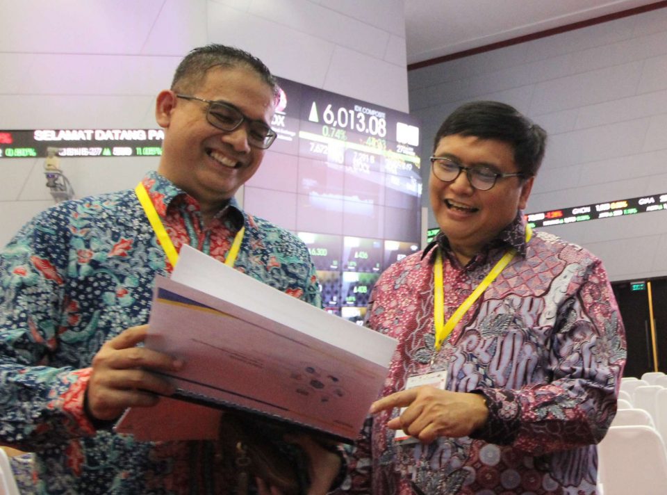 JAKARTA (Pos Sote)-Direktur PT Bank Tabungan Negara (Persero) Tbk. Iman Nugroho Soeko (kanan) dan Head of Investor Relations Department Bank BTN Winang Budoyo berbincang usai memberikan pemaparan di sela Konferensi Pers usai Public Expose di Gedung Bursa Efek Indonesia, Jakarta, Senin (27/8). Bank BTN optimistis target perseroan tercapai pada akhir tahun nanti ditopang peluang peningkatan kredit dengan adanya relaksasi Loan-to-Value (LTV) dan Aset Tertimbang Menurut Risiko (ATMR) serta penurunan biaya dana dan biaya operasional dari masuknya aliran dana Fasilitas Likuiditas Pembiayaan Perumahan (FLPP). Fundamental funding Bank BTN pun diyakini tetap kokoh ditopang secondary reserve yang dimiliki perseroan senilai Rp14,02 triliun per Juni 2018, serta dana pendamping jangka panjang berupa obligasi dan Negotiable Certificate of Deposit (NCD) dengan outstanding per Juni 2018 senilai Rp20,95 triliun. Bambang Tri P