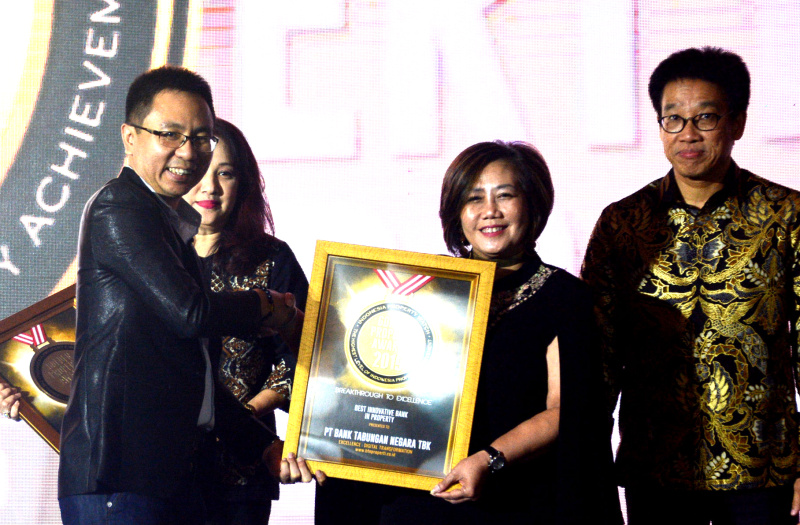 JAKARTA (PosSore.com) – Head of Non-Subsidized Lending Division PT Bank Tabungan Negara (Persero) Tbk. Suryanti Agustinar (dua kanan) menerima penghargaan dari CEO Indonesia Property Watch Ali Tranghanda dalam ajang Golden Property Awards 2019 di Jakarta, Kamis (5/12/2019)Malam. Bank BTN kembali menyabet penghargaan sebagai Best Innovative Bank in Property kategori Digital Transformation. Bank spesialis perumahan ini berkomitmen akan terus berinovasi di lini bisnis digitalnya untuk menghadirkan produk dan layanan yang mudah diakses para nasabahnya. Perseroan juga terus mengembangkan layanan Kredit Pemilikan Rumah (KPR) sehingga menjadi yang terbaik di Asia.B.Tri Prasetyo