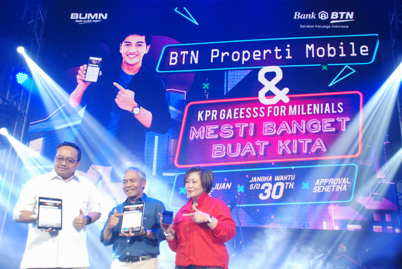 JAKARTA (PosSore.com) -Direktur Distribution, Lending and Funding Bank BTN Jasmin bersama Direktur IT Andi Nirwoto didampingi Head of Non-Subsidized Lending Division Bank BTN Suryanti Agustinar kompak tersenyum usai meluncurkan Aplikasi BTN Properti Mobile versi Android di Jakarta, Rabu (18/12/2019). Aplikasi tersebut akan mempermudah generasi milenial mengakses berbagai produk KPR Bank BTN. Perseroan bersiap menguasai pasar milenial dengan melakukan rebranding produk KPR Gaeesss For Millenials. Adapun, sejak resmi ditawarkan pada Oktober 2018 hingga November 2019, Bank BTN sukses mencatatkan penyaluran KPR Gaeesss senilai Rp9,3 triliun. Nilai tersebut setara penyaluran untuk 27.593 unit hunian bagi kalangan milenial. B. Tri Prasetyo