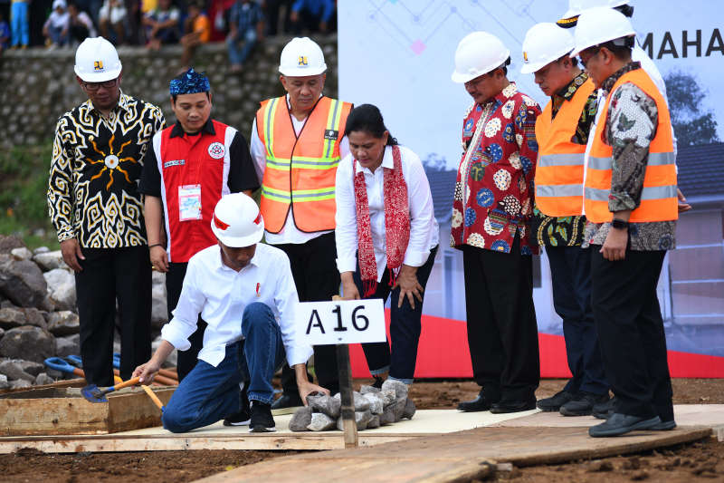 JAKARTA (Pos Sore.com) –Presiden Republik Indonesia, Joko Widodo dan isteri bersama Direktur Utama PT Bank Tabungan Negara (Persero) Tbk, Maryono, Menteri Pekerjaan Umum dan Perumahan Rakyat Basuki Hadimuljono,Menteri Sosial Agus Gumiwang Kartasasmita, Gubernur Jawa Barat Ridwan Kamil dan Bupati Garut Rudy Gunawan serta Ketua Persaudaraan Pencukur Rambut Garut (PPRG) Irawan Hidayah meletakkan batu di area perumahan PPRG di desa Sukamukti, Banyuresmi, Garut, Jawa Barat, Sabtu (19/1).