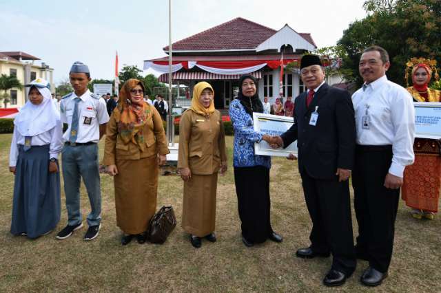 BENGKULU (PosP Sore)-Direktur Utama PT Bank Tabungan Negara (Persero) Tbk menjadi inspektur upacara bendera dalam rangka HUT ke73 Republik Indonesia diselenggarakan di Rumah Pengasingan Bung Karno di Bengkulu, Jumat (7/8/2018). Upacara bendera yang termasuk dalam kegiatan program BUMN Hadir Untuk Negeri ini turut dihadiri oleh Deputi BUMN Bidang Pertambangan, Industri Strategis dan Media Fajar Harry Sampurno. Pada upacara kali ini Bank BTN memberikan bantuan untuk pengembangan pendidikan di Bengkulu melalui peningkatan sarana belajar dan taman bacaan untuk 5 sekolah dasar di Propinsi Bengkulu dengan total bantuan senilai Rp 400 Juta. Bank BTN siap ekspansi kredit di wilayah Bengkulu sejalan dengan pertumbuhan ekonomi dan permintaan rumah khususnya subsidi pada wilayah tersebut. Bambang Tri P.