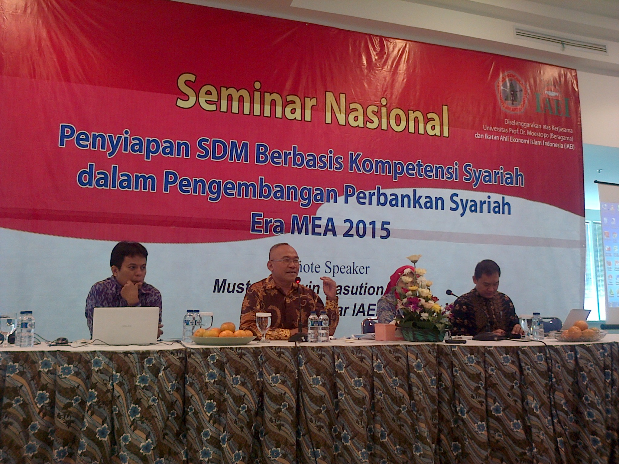 Ia menegaskan hal itu usai memberikan keynote speech pada seminar ‘Ekonomi Syariah Indonesia Menghadapi MEA 2015’ yang diadakan Universitas Prof. Dr. Moestopo (Beragama) dan IAEI Sabtu (11/10). Seminar ini juga menandai dibukanya Program Studi Keuangan dan Perbankan Syariah di kampus yang dipimpin Prof. Dr. H. Sunarto, M.Si.
