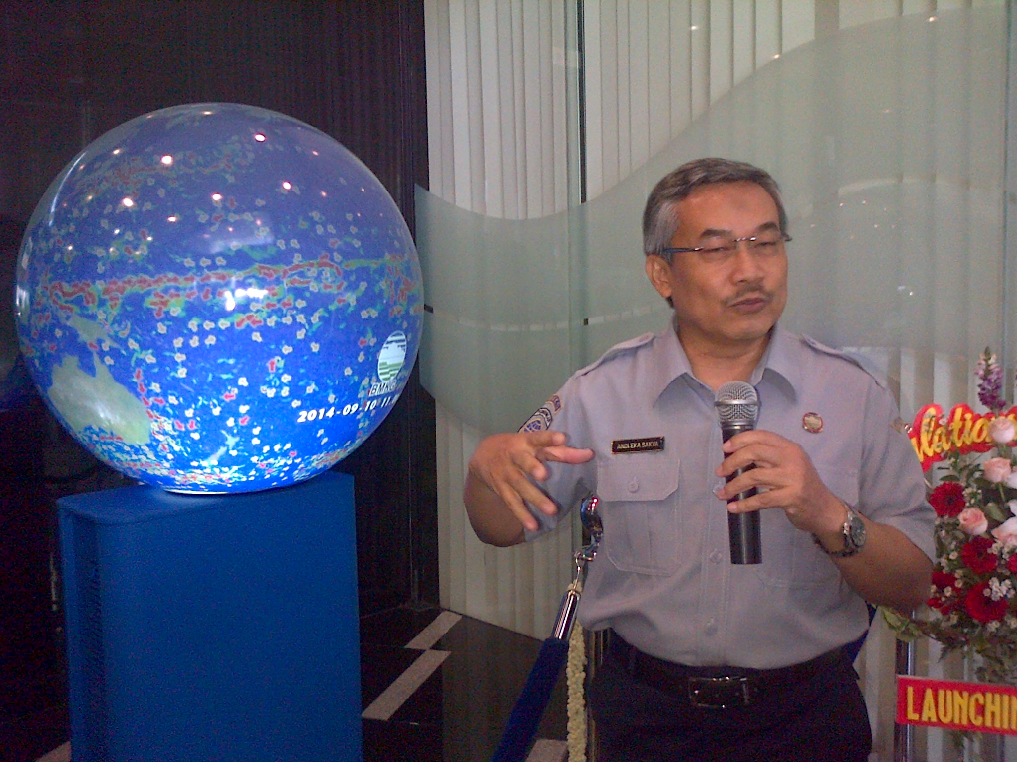 “Dengan display berbentuk bola dunia atau globe, kita melihat suatu fenomena cuaca bumi yang terjadi di atas bumi secara nyata,” kata Kepala BMKG, DR. Andi Eka Sakya, MEng, saat peluncuran With Globe, di kantor BMKG, Kamis (11/9).