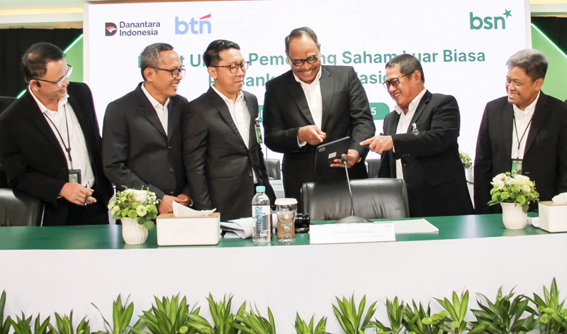 POSSORE.ID,JAKARTA -RUPSLB Bank Syariah Nasional (BSN) yang dipimpin oleh Komisaris Utama merangkap sebagai komisaris independent BSN Bahrullah Akbar didampingi oleh jajaran komisaris, Direktur Utama BSN Alex Sofjan Noor, Wakil Direktur Utama BSN Arga M. Nugraha beserta jajaran Direksi BSN lainnya menyetujui 4 mata acara yang menjadi agenda dalam RUPSLB, ya g diselenggarakan di Jakarta, Rabu (19/11). Setelah resmi menerima limpahan aset dan liability Unit Usaha Syariah (UUS) BTN, Bank Syariah Nasional (BSN) menyatakan kesiapannya untuk menjadi katalitas penguat pangsa pasar syariah di Indonesia. BSN pasca spin off beraset sekitar Rp71 Triliun juga siap mengejar pertumbuhan aset perseroan diatas Rp100 Triliun pada 2 tahun ke depan. Kesiapan BSN yang saat ini masuk dalam kelompok Bank Syariah dengan aset terbesar kedua di Indonesia juga disampaikan pada RUPSLB tersebut.B.Tri Prasetyo