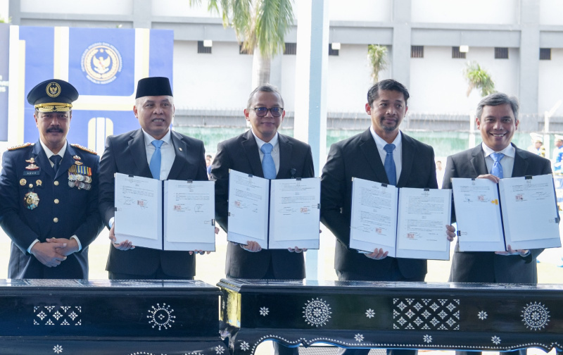 POSSORE.ID,JAKARTA -Direktur Utama PT Bank Tabungan Negara (Persero) Tbk (BTN) Nixon LP Napitupulu (kanan) dan Menteri Imigrasi dan Pemasyarakatan RI Jenderal Pol. (Purn) Agus Andrianto (kiri) menandatangani nota kesepahaman bersama para pimpinan kementerian dan lembaga lainnya saat upacara Peringatan Hari Bhakti Kementerian Imigrasi dan Pemasyarakatan ke-1 Tahun di Lembaga Pemasyarakatan (Lapas) Kelas IIA Narkotika Jakarta, Jatinegara, Jakarta Timur, Rabu (19/11/2025). Penandatanganan ini menandai penguatan sinergi BTN dalam penyediaan dan pemanfaatan produk perbankan di lingkungan Kementerian Imigrasi dan Pemasyarakatan RI.B.Tri Prasetyo.