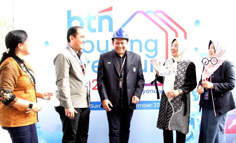 POSSORE.ID, JAKARTA -Human Capital Management Division Head PT Bank Tabungan Negara (Persero) Tbk Rahmayati (kanan), berbincang bersama Kepala Kantor Wilayah BTN Jatim, Bali, dan Nusra Carly Tambunan (kedua kiri), Kasubdit Pengembangan Kewirausahaan dan Karir Institut Teknologi Sepuluh Nopember (ITS) Hertiari Idajati (kiri), Wakil Rektor Bidang Riset, Inovasi, Kerjasama, dan Kealumnian ITS Agus Muhamad Hatta (ketiga kiri), dan Wakil Rektor Bidang Akademik dan Kemahasiswaan ITS Nurul Widiastuti (kedua kanan) di sela Roadshow BTN Housingpreneur 2025 di ITS, Surabaya, Jumat (14/11/2025). Melalui Roadshow BTN Housingpreneur, BTN memberikan kesempatan bagi arsitek, pengusaha, mahasiswa, dan masyarakat Surabaya untuk melahirkan inovasi di sektor hunian. Adapun, BTN Housingpreneur 2025 merupakan ajang kompetisi tahunan di mana para pemenang dapat terhubung ke jejaring ekosistem perumahan yang mempertemukan ide, industri, dan peluang pasar properti di Indonesia.B.Tri Prasetyo.