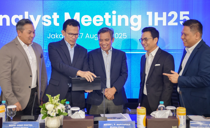 JAKARTA(Possore.id) -Direktur Utama BTN Nixon LP Napitupulu (tengah) didampingi Direktur Network & Retail Funding BTN Rully Setiawan (kiri), Direktur Finance & Strategy BTN Nofry Rony Poetra (kedua kiri), Direktur Risk Management BTN Setiyo Wibowo (kedua kanan), dan SEVP Digital Business BTN Thomas Wahyudi (kanan) kompak tersenyum sembari melihat laporan keuangan BTN Semester I/2025 di Menara 2 BTN, Jakarta, Rabu (27/8). Per 30 Juni 2025, BTN membukukan laba bersih sebesar Rp1,7 triliun, naik 13,6% secara year-on-year (yoy) dibandingkan periode yang sama tahun lalu sebesar Rp1,5 triliun. Peningkatan laba bersih tersebut ditopang oleh pendapatan bunga kredit yang naik 23,5% yoy menjadi Rp18,50 triliun hingga Juni 2025 serta efisiensi proses bisnis di tengah tantangan makroekonomi. Penyaluran kredit dan pembiayaan BTN juga tercatat tumbuh 6,8% yoy menjadi Rp376,11 triliun hingga semester I/2025, didukung oleh pertumbuhan kredit dan pembiayaan ke sektor perumahan dan non-perumahan. BTN juga mencatat pertumbuhan dana pihak ketiga sebesar 11,2% yoy menjadi Rp406,38 triliun hingga semester I/2025, sejalan dengan upaya perseroan untuk memperkuat mesin pendanaan, terutama dana murah dan tidak terlepas dari upaya menggencarkan akusisi pengguna baru melalui aplikasi Bale by BTN. B. Tri Prasetyo.