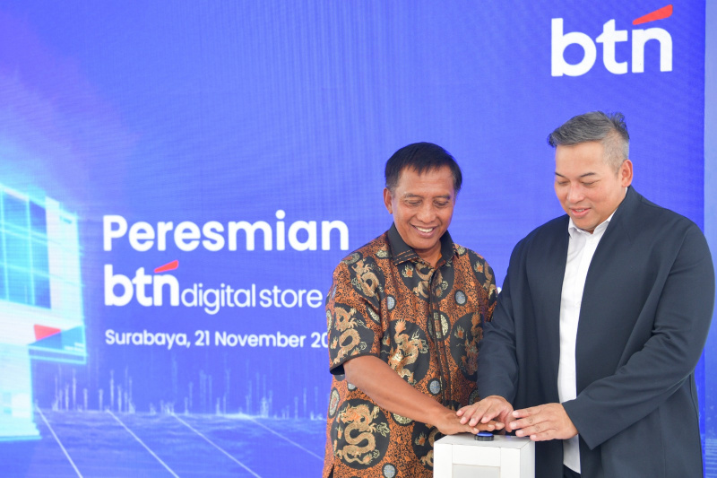 POSSORE.ID,JAKARTA-Direktur Network & Retail Funding BTN Rully Setiawan (kanan) bersama Rektor Universitas Negeri Surabaya Nurhasan saat meresmikan BTN Digital Store KCP Digital Univeraitas Negeri Surabaya (Unesa) Lidah Wetan Surabaya, Jumat (21/11/2025). Sebagai bagian dari ekspansi layanan digital BTN di Surabaya, Unesa dipilih sebagai lokasi peluncuran karena telah menjadi mitra strategis BTN sejak 2006. Seluruh pembayaran kampus terintegrasi dengan BTN, mulai dari transaksi pendidikan sekitar 70.000 mahasiswa hingga payroll lebih dari 2.300 dosen dan karyawan.B.Tri Prasetyo.