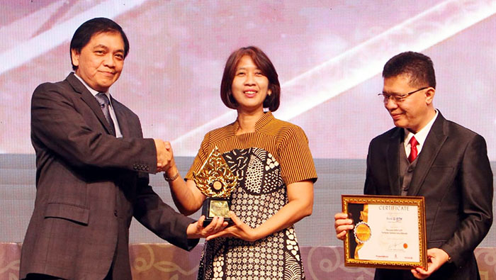 JAKARTA (Pos Sore.com) – Direktur PT Bank Tabungan Negara (Persero) Tbk. Elizabeth Novie R. (tengah) menerima penghargaan Kategori Kinerja Bank Terbaik: Penyalur KPR FLPP Terbesar Selama Satu Dekade di Jakarta, Jumat (26/9). Penghargaan tersebut menjadi wujud apresiasi kepada manajemen Bank BTN yang telah menjadi pendukung utama Program Satu Juta Rumah. Bank BTN berkomitmen akan terus mendukung program nasional yang kini dinahkodai Kementerian PUPR tersebut. Adapun, hingga semester I/2019, Bank BTN telah menyalurkan kredit perumahan untuk 424.863 unit rumah atau senilai Rp36,42 triliun dalam rangka mendukung Program Satu Juta Rumah. B. Tri Prasetyo