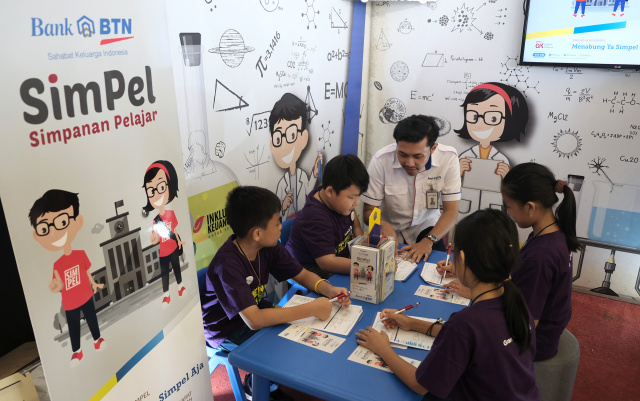 JAKARTA (PosSore.com) – Deputy Business Manager PT Bank Tabungan Negara(Persero) Tbk Kantor Cabang Tangerang Jawa Barat, Tri Hartono menyerahkan  buku tabungan SimPel kepada siswa SD Dharma Putra Tangerang usai mengikitu acara Gramedia Science Day di Tangerang, Banten, Sabtu (2/11). Bank BTN memberikan diskon kepada peserta yang mendaftar di ajang Gramedia Science Day.  Program tersebut digelar sebagai upaya Bank BTN meraih target dana ritel dari tabungan SimPel sebesar Rp 76 miliar dengan jumlah rekening sebanyak 665.798 rekening. B. Tri Prasetyo
