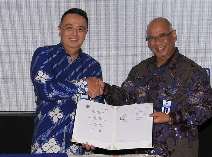 JAKARTA (Pos Sore)– Managing Director Commercial Banking PT Bank Tabungan Negara (Persero) Tbk. Oni Febriarto R dan Direktur Direktorat Pengelolaan Kas Negara Dirjen Perbendaharaan Kementerian Keuangan Rudy Widodo saat menandatangani Perjanjian Kerja Sama di Jakarta, Senin (30/10).
