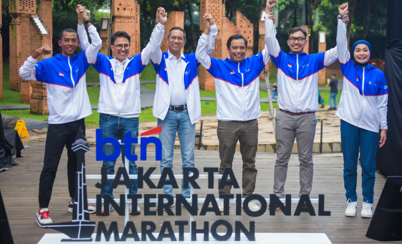 JAKARTA (Possore.id) -Pj Gubernur DKI Jakarta Heru Budi Hartono bersama Direktur Utama BTN Nixon LP Napitupulu menjadi narasumber dalam acara Press Conference Grand Launching BTN Jakarta International Marathon (JAKIM) 2024 di Jakarta, Minggu (10/2). Pemprov DKI Jakarta berkomitmen menerapkan 3S yakni security, safety dan sterill dalam rute BTN JAKIM 2024 yang akan digelar pada 23 Juni 2024 bertepatan dengan HUT DKI Jakarta ke-497.