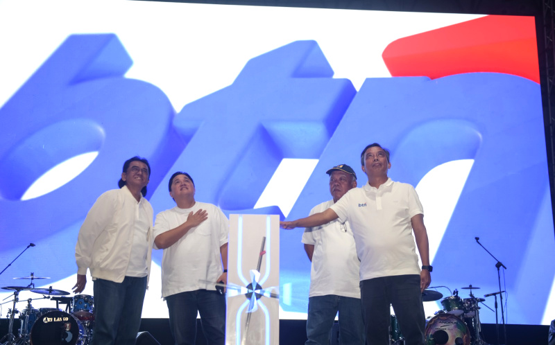 JAKARTA (Possore.id) -Menteri BUMN Erick Thohir (kedua dari kiri) bersama dengan Menteri Pekerjaan Umum dan Perumahan Rakyat, Basuki Hadimuljono (kedua dari kanan) dan Direktur Utama PT Bank Tabungan Negara (Persero) Tbk, Nixon LP Napitupulu (kanan) serta Komisaris Utama BTN Chandra M Hamzah (kiri) menekan tombol pada acara seremoni peluncuran logo BTN terbaru di Jakarta, Minggu (3/3/2024). Peluncuran Logo baru sekaligus rebranding BTN menjadi simbol keberhasilan dari transformasi yang dilakukan perusahaan. Logo baru merepresentasikan perusahaan yang lebih dinamis dan adaptif terhadap perkembangan zaman serta komitmen untuk terus melayani nasabah dengan dan terus mengembangkan bisnis yang berorientasi pada pertumbuhan yang progresif dengan optimis. B. Tri Prasetyo.