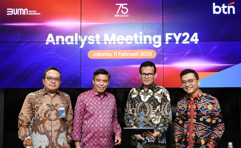 JAKARTA (Possore.id) – BTN President Director Nixon LP Napitupulu chatted with BTN Finance Director Nofry Rony Poetra, BTN Risk Management Director Setiyo Wibowo and BTN IT Director Andi Nirwoto during the BTN Financial Performance Analyst Meeting in 2024 in Jakarta, Tuesday (11/2/2025). PT Bank Tabungan Negara (Persero) Tbk (BTN) is optimistic that by the end of 2025 the company’s assets will reach IDR 500 trillion. This is in line with BTN’s asset acquisition by the end of 2024 which amounted to IDR 469.61 trillion, an increase of 7% compared to 2023 which amounted to IDR 438.75 trillion. Meanwhile, throughout 2024, BTN managed to record credit and financing distribution of IDR357.97 trillion or grew by 7.3% annually (year-on-year/yoy) compared to the same period in 2023 of IDR333.69 trillion. B. Tri Prasetyo. B. Tri Prasetyo.