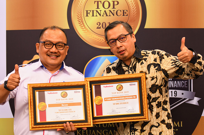PT Bank Tabungan Negara (Persero) Tbk meraih penghargaan Top Bank 2019 dan Top CEO 2019 pada ajang penghargaan bertajuk Top Finance 2019 di Jakarta, Rabu (28/8/2019). Penghargaan diterima oleh Head of Corporate Communication BTN Eko Hapsoro. Bank BTN dinilai telah sukses mengawal kinerja perseroan on track sampai dengan Semester I 2019 dengan kepemimpinan manajemen yang dinilai sukses mengawal perseroan berkinerja baik walaupun ekonomi nasional kurang kondusif. B. Tri Prasetyo