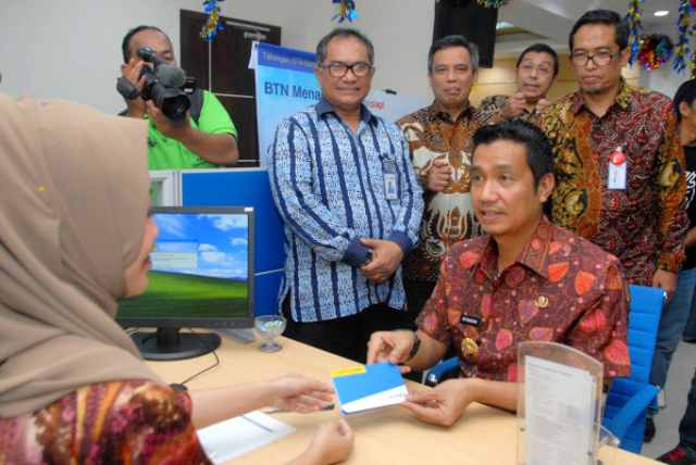 PEMANTANG SIANTAR (Pos Sore)-Direktur PT Bank Tabungan Negara (Persero) Tbk. Nixon L. P. Napitupulu (kedua kanan), Kepala Cabang Bank BTN Pematang Siantar Agus (kanan), bersama Kepala Kanwil 4 Bank BTN Manahan Hutapea mendampingi Walikota Pematang Siantar Hefriansyah membuka tabungan usai peresmian Bank BTN Kantor Cabang Pematang Siantar, Pematang Siantar, Jumat (15/12). Kantor cabang ini kian melengkapi jaringan kantor Bank BTN di Sumatera Utara untuk melayani KPR di wilayah tersebut terutama dalam mendukung kesuksesan Program Satu Juta Rumah. Hingga November 2017, Bank BTN Kantor Cabang Pematang Siantar telah merealisasikan kredit sekitar Rp 82 miliar. Jaringan kantor Bank BTN di kota terbesar kedua di Sumatera Utara ini juga tercatat telah menghimpun dana pihak ketiga (DPK) sekitar Rp260 miliar per November 2017.Bambang Tri P