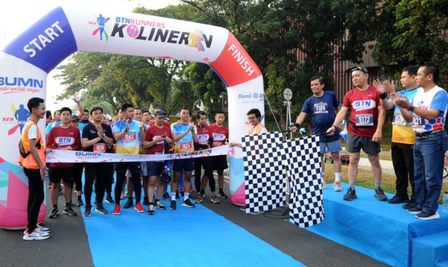 JAKARTA (PosSore.com – Direktur PT Bank Tabungan Negara (Persero) Tbk Nixon LP Napitupulu didampingi Kepala divisi ritel dan funding BTN Ferry Sipahutar, Corporate Secretary BTN Achmad Chaerul melepas ratusan peserta BTN runner di halaman kantor cabang BTN Bintaro, Minggu (15/9). BTN Runner merupakan komunitas penggemar olah raga lari yang menjadi ruang untuk pegawai BTN dalam menyalurkan sekaligus mengembangkan bakatnya. Perseroan memberikan ruang untuk pegawainya membentuk komunitas yang positif bagi pegawai yang bertujuan untuk meningkatkan semangat kerja dalam mendukung perusahaan. B. Tri Prasetyo