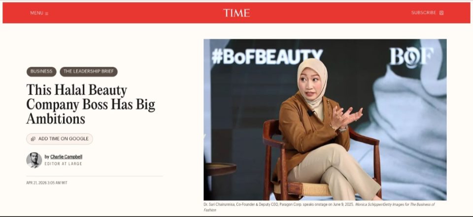 POSSORE.ID, Jakarta — Majalah global TIME menampilkan wawancara eksklusif bersama dr. Sari Chairunnisa, Deputy CEO & Chief R&D Officer ParagonCorp, dalam rubrik The Leadership Brief bertajuk “This Halal Beauty Company Boss Has Big Ambitions.”