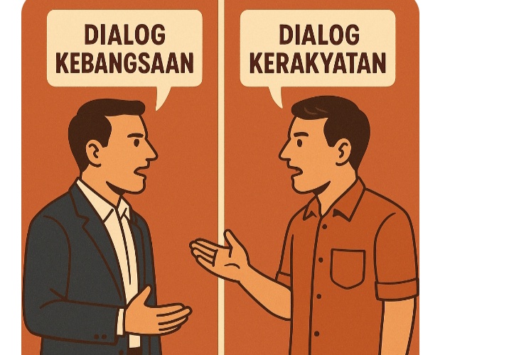 Dialog kebangsaan memang penting, tetapi ketika ia menjadi terlalu simbolik dan hanya menjadi ajang afirmasi sepihak tanpa refleksi kritis dan keterlibatan rakyat secara utuh, maka ia kehilangan maknanya.