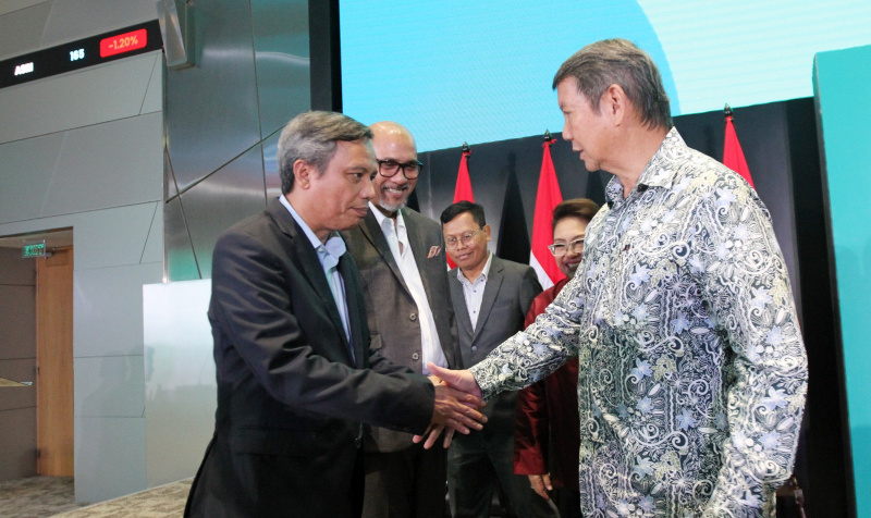 POSSORE.ID,JAKARTA -Direktur Utama PT Bank Tabungan Negara (Persero) Tbk, Nixon LP Napitupulu berjabat tangan dengan Ketua Satgas Perumahan, Hashim S. Djojohadikusumo usai menerima penghargaan Inspirational Figure in Environmental and Social Sustainability pada Investing on Climate Editors’ Choice Award 2025 di Jakarta, Jumat (5/12/2025). Selain penghargaan individu, BTN juga meraih apresiasi di tiga kategori lainnya yaitu Best Emission Reduction, Best Literacy for Climate Resilience, dan Best Innovative Conservation. Pengakuan ini menegaskan kelayakan BTN sebagai pelopor pembiayaan hijau melalui program pengurangan emisi, program penghijauan serta inisiatif pembangunan rumah rendah emisi bagi masyarakat.B.Tri Prasetyo.