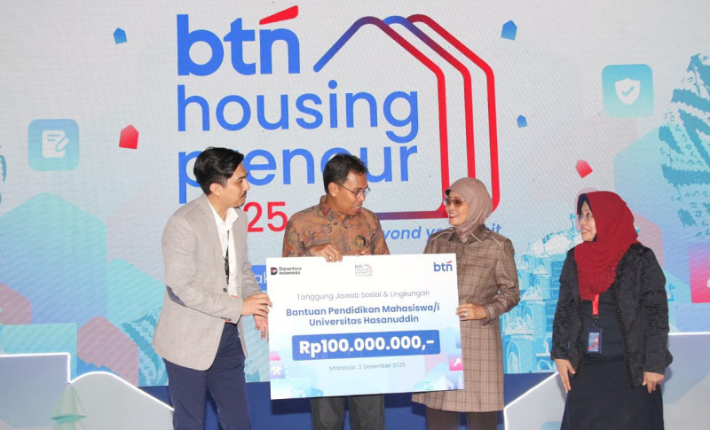 POSSORE.ID,MAKASAR -Kepala Kantor Wilayah Salampua BTN (Sulawesi, Maluku, Papua) Bagus Hendrisetiawan (kiri), Wakil Rektor Bidang SDM, Alumni, dan Sistem Informasi Universitas Hasanuddin Prof. Dr. Farida Patittingi, S.H., M.Hum (tengah), dan Human Capital Management Division Head BTN Rahmayanti (kanan) hadir dalam Roadshow BTN Housingpreneur 2025 di Makassar, Rabu (3/12/2025). BTN Housingpreneur 2025 digelar kali keduanya tahun ini dengan tujuan mengajak talenta muda Makassar mengembangkan ide perumahan yang inovatif dan mencari solusi perumahan yang relevan dan aplikatif sesuai tema Elevate Beyond Your Limit. Dalam acara tersebut dibahas mengenai tantangan hunian di KTI dan peluang kolaborasi dalam ekosistem perumahan nasional.B.Tri Prasetyo.