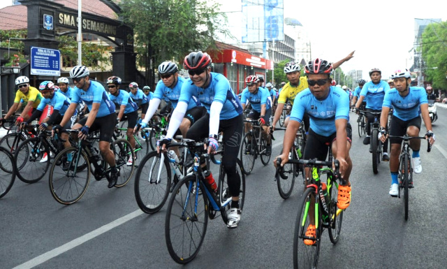 SEMARANG (PosSore.com) – DRM Suport Kantor Wilayah 6 Bank BTN Agus Fajarianto melepas bendera start etape pertama olah raga sepeda BTN Tour de Borobudur di Semarang, Sabtu (2/11/2019). Kegiatan sepeda ini diikuti oleh ratusan peserta yang berasal dari Indonesia dan negara asing. Adapun etape pertama adalah Semarang menuju Solo dan dilanjutkan pada etape kedua yang dilaksanakan pada Minggu (3/11/2019) tujuan Solo menuju Candi Borobudur. BTN Tour de Borobudur merupakan kegiatan tahunan yang diselenggarakan untuk memberikan ruang penggemar olah raga sepeda sekaligus dalam rangka mendukung pengembangan destinasi pariwisata khususnya di wilayah Jawa Tengah. B. Tri Prasetyo