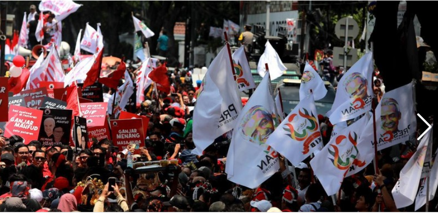 Massa pendukung Capres/ Cawapres Ganjar-Mahfud memenuhi area Kantor Pemilihan Umum dan sekitarnya di Jakarta, saat pendaftaran pasangan tersebut, Kamis (19/10).//Foto: CNBC