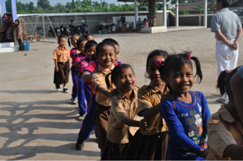 Illustrasi: Anak-anak SD di sebuah sekolah sedang berbaris, ceria. //Foto: Istimewa