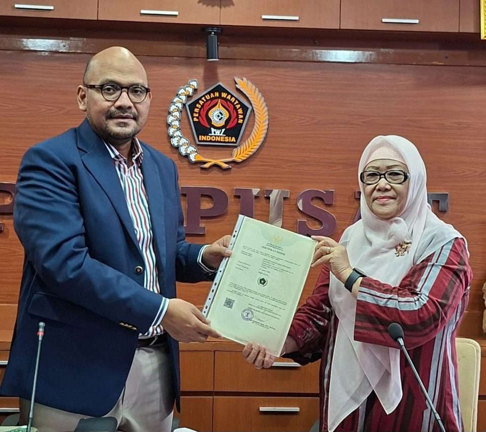 Sertifikat dengan nomor pendaftaran IDM001424169 tersebut, diserahterimakan secara resmi di Kantor PWI Pusat Gedung Dewan Pers Lt. IV, Jakarta, pada Rabu (1/4/2026).