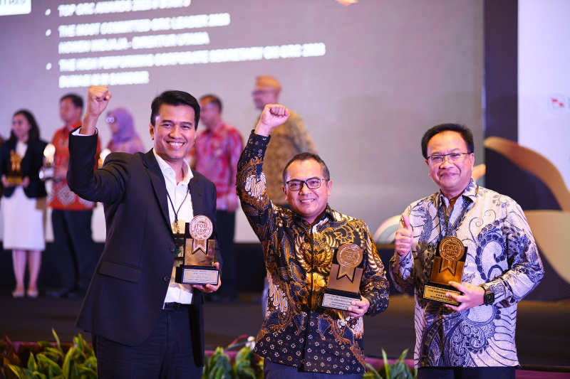 JAKARTA (Possore.id) -Direktur Human Capital, Compliance & Legal Bank BTN Eko Waluyo berbincang dengan Corporate Secretary Bank BTN Ramon Armando dan Kepala Divisi Compliance & Governance Division Wahju B Witjaksono usai menerima penghargaan Top GRC Award 2023 di Jakarta, Rabu (6/9/2023). Bank BTN dinilai menjadi salah satu BUMN terbaik dalam implementasi GCG dengan memborong tiga penghargaan dalam ajang tersebut yakni Top GRC Award 2023 Star 5, The Most Committed GRC Leader 2023 dan The High Perfoming Board of Commissioner on GRC 2023.B.Tri Prasetyo