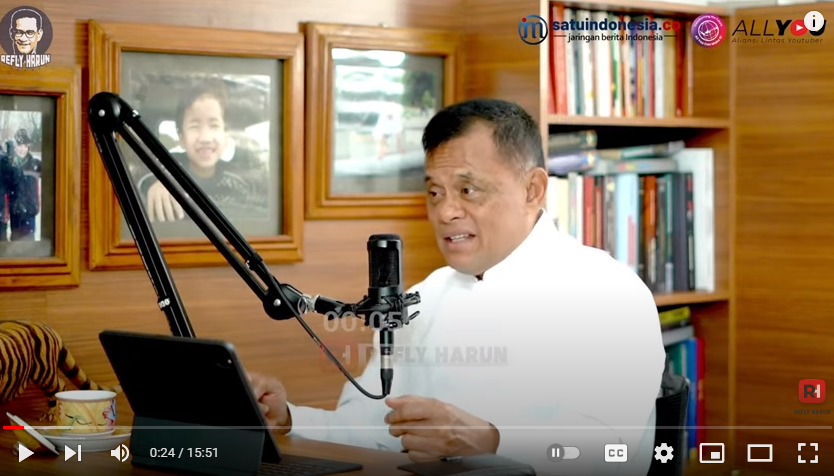Mantan Panglima TNI Jenderal Gatot Nurmantyo pada acara podcast Refly Harun.//Tangkapan Layar