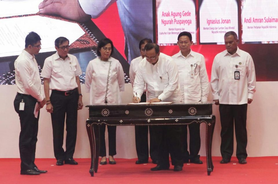 Penandatangan MoU dilakukan oleh Menteri Hukum dan Hak Asasi Manusia Yasonna Laoly, Menteri Keuangan Sri Mulyani, Menteri Agraria dan Tata Ruang/BPN Sofyan Djalil, serta perwakilan dari Kementerian ESDM, Kementerian Pertanian serta Kementerian Koperasi dan UKM. Acara tersebut juga dihadiri oleh wakil Komisi Pemberantasan Korupsi (KPK) yakni Laode M Syarif.