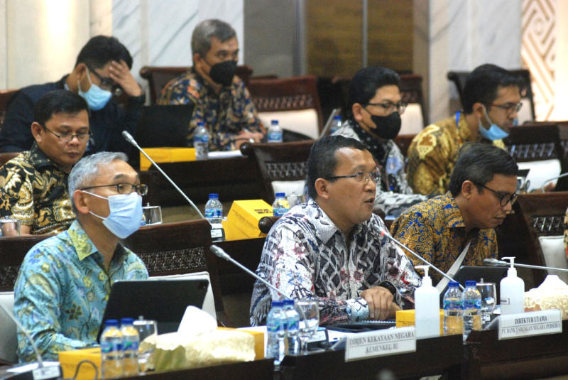JAKARTA (Possore.com)-Direktur Jenderal Kekayaan Negara Kementerian Keuangan Rionald Silaban bersama Direktur Utama Bank BTN Haru Koesmahargyo, Wakil Dirut Bank BTN Nixon LP Napitupulu dan Direktur Finance Bank BTN Nofry Rony Poetra saat menghadiri Rapat Dengar Pendapat (RDP) dengan Komisi XI DPR RI tentang Program Tahunan Privatisasi Tahun 2022 di Jakarta, Rabu (14/9). Dalam RDP tersebut Komisi XI DPR menyetujui Penyertaan Modal Negara (PMN) kepada Bank BTN melalui mekanisme rights issue, dengan PMN senilai Rp2,48 triliun dan nilai rights issue porsi publik sebesar Rp1,65 triliun. B. Tri P.