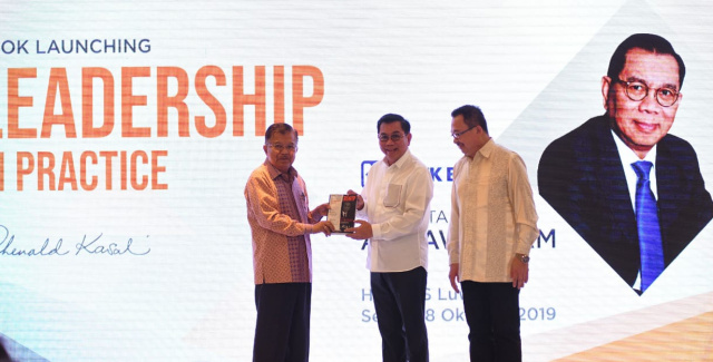 JAKARTA(Pos Sore.com) – Komisaris Utama PT Bank Tabungan Negara (Persero) Tbk. Asmawi Syam bersama Wakil Presiden Republik Indonesia Jusuf Kalla dan Guru Besar FEUI Rhenald Khasali tersenyum usai menyaksikan prosesi peluncuran buku Leadership in Practice di Jakarta, Selasa (8/10/2019). Buku tersebut menceritakan pengalaman kerja Asmawi selama 37 tahun meniti karir dari staf hingga menjadi CEO di dunia perbankan. Dari pengalaman kerjanya, pemimpin harus memiliki visi dan ide yang jelas serta mampu mengeksekusinya dengan berani. Akhirnya buku ini akan menjadi salah satu sumber pembelajaran bagi seorang leadership yang diharapkan akan membawa manfaat bagi negeri. B. Tri Prasetyo.