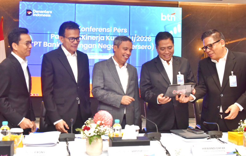 POSSORE.ID,JAKARTA-Direktur Utama PT Bank Tabungan Negara (Persero) Tbk Nixon LP Napitupulu (tengah) berbincang bersama Direktur Risk Management Setiyo Wibowo (kiri), Direktur Finance & Strategy Nofry Rony Poetra (kedua kiri), Direktur Consumer Banking Hirwadi Gafar (kedua kanan), dan SEVP Digital Business Thomas Wahyudi (kanan) berbincang sebelum menyampaikan Paparan Kinerja Kuartal I/2026 di Menara BTN, Jakarta, Rabu (15/4/2026). BTN sukses mencatatkan pertumbuhan laba bersih mencapai 22,6% secara tahunan (year-on-year/yoy) menjadi Rp1,1 triliun per kuartal I/2026 ditopang berbagai langkah transformasi, inovasi, serta dukungan solid Pemerintah untuk industri pembiayaan perumahan nasional. Sejalan dengan capaian tersebut, BTN juga terus menjalankan noble purpose dalam mendukung masyarakat memiliki rumah dengan menyalurkan Kredit Pemilikan Rumah (KPR) mencapai 6 juta unit sejak 1976 hingga awal April 2026 atau senilai Rp530 triliun. Adapun, adanya keberpihakan Pemerintah pada sektor perumahan tersebut memiliki multiplier effect yang besar, tidak hanya bagi penghuni rumah tapi juga bagi perekonomian nasional. Dari sektor perumahan nasional tercatat bisa membuka peluang pekerjaan terhadap 12,5 juta orang di seluruh sektor terkait dan setiap tambahan capital injection sebesar Rp1 triliun di industri ini akan menambah keterlibatan tenaga kerja sebanyak 8.000 orang.B.Tri Prasetyo.