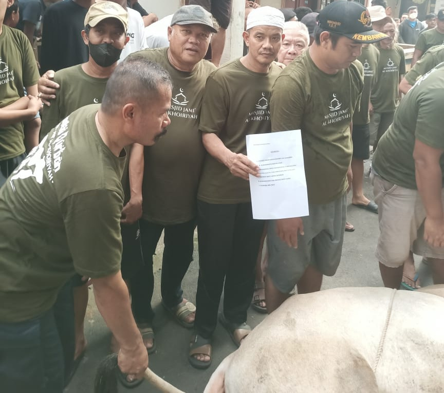 hal itu disampaikan oleh ketua Dewan ke Makmuran Masjid Al Khairiyah yang berada di kampung sawah witana kembangan Utara Jakarta Barat ,Ketua DKM Masjid Al Khariyah Haji Sudarmanto mengatakan bahwa gotong royong dan kekompakan warga sekitar sudah diwariskan oleh para pendahulu dan tokoh-tokoh sejarah di kampung sawah Witana, bahwasanya keterlibatan masyarakat sangat diperlukan dan pendekatan-pendekatan kepada masyarakat di warga sekitar masjid sudah terjalin sejak lama turun temurun sehingga beliau berharap kekompakan ini terus dipertahankan dari generasi ke generasi. Ketua Remaja Masjid AL Khariyah M,Iman mengatakan peran remaja masjid sangat di perlukan dalam men syiarkan kegiatan kegiatan DKM . oleh karena itu Iman berharap Remaja Masjid Al Khariyah terus menjalin siturahmi yang kuat dan tetap kompak selalu. adapun pelaksanaan hari raya idul adha diadakan tepat pada tanggal 10 Dzulhijjah hari senin17 Juni2024. jumlah Hewan Qurban Tahun ini 4 ekor sapi dan 11 ekor kambing kemudian didistribusikan kepada warga di sekitar masjid yaitu RT 001/ RT002/ RT 003/ RT004/ RW 07 kelurahan kembangan Utara. sekitar 874 paket daging hewan qurban di serahkan kepada warga. kemudian dalam pelaksanaan salat idul Adha ini yang bertindak sebagai imam yaitu ustadz Alfan Fahmi Romadon dan sebagai khatib yaitu ustadz Muhammad sowi alhijry S.Ag dalam penyampaian khutbahnya khotib ber pesan bahwa berkurban bukan hanya hewan saja namun juga juga mampu berqurban untuk menahan rasa egois kemudian rasa sombong di setiap individu manusia. B. Tri Prasetyo.