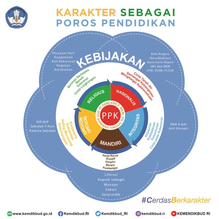 Lima nilai utama karakter yang menjadi prioritas pada PPK, terkait erat dengan berbagai program prioritas Kemendikbud di bidang pendidikan dan kebudayaan.