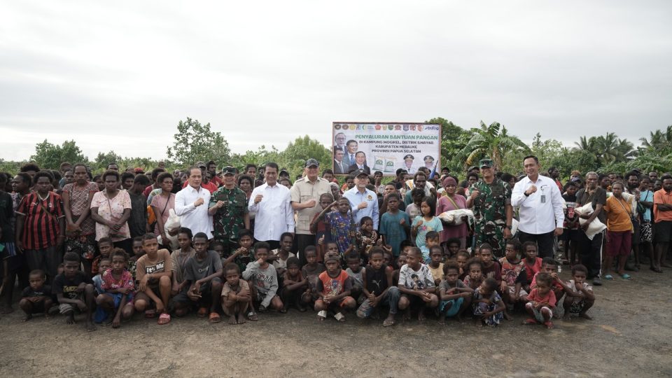 Tujuan rombongan ini sederhana namun bermakna besar: memastikan beras bantuan pangan benar-benar sampai di tangan masyarakat karena hari itu menjadi momen bersejarah bagi warga dua kampung di ujung timur Indonesia. Di hadapan masyarakat yang berkumpul, sejumlah Menteri hadir langsung mendampingi penyaluran bantuan pangan.