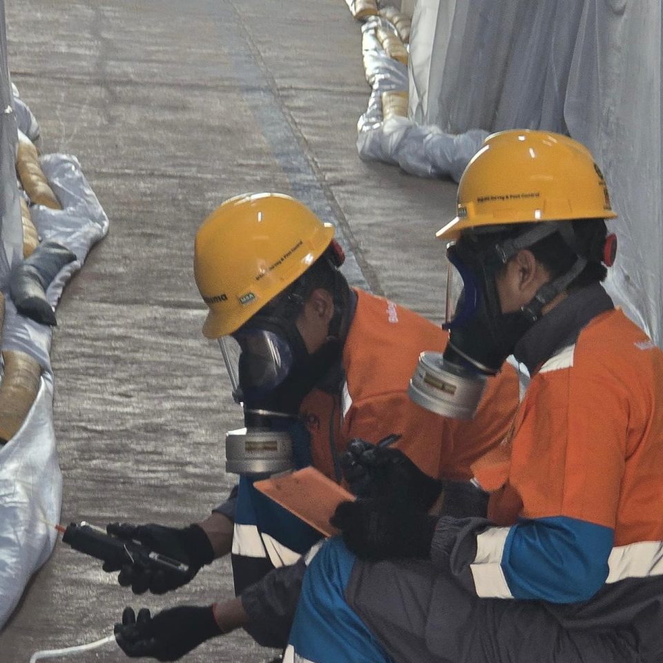 Namun menjaga kualitas beras tidak cukup hanya dengan menumpuk karung dalam ruang sejuk. Ada proses yang berjalan terus-menerus, yang disebut Pengelolaan Hama Gudang Terpadu (PHGT). Metode ini menjadi panduan utama dalam merawat komoditas, meliputi kebersihan gudang, pemantauan rutin, penyemprotan preventif, hingga fumigasi jika ditemukan hama.