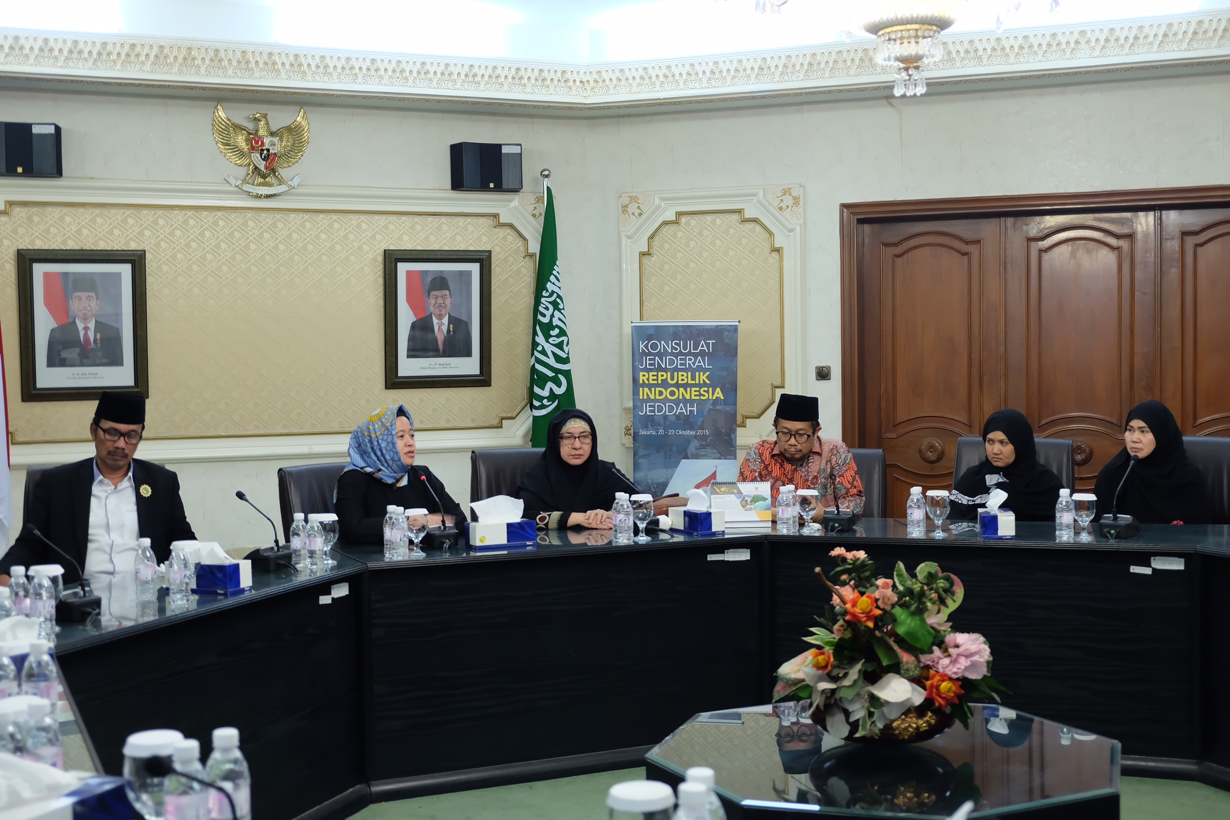 Menko PMK juga berkenan berdialog dengan kelompok masyarakat madani, Pospertki, BMI Garda Bangsa PKB dan para aktivis pembela WNI/TKIB di Ruang Rapat Konjen Jeddah. Dalam kesempatan ini, Menko PMK juga menghimbau agar kelompok aktivis ini turut mensosialisasikan proses amnesti WNIB ini.