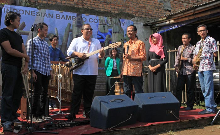 “Kita membuat 14 macam alat musik dari bambu seperti Biola, gitas, gitar bass, dan alat-alat tiup,” ungkapnya.