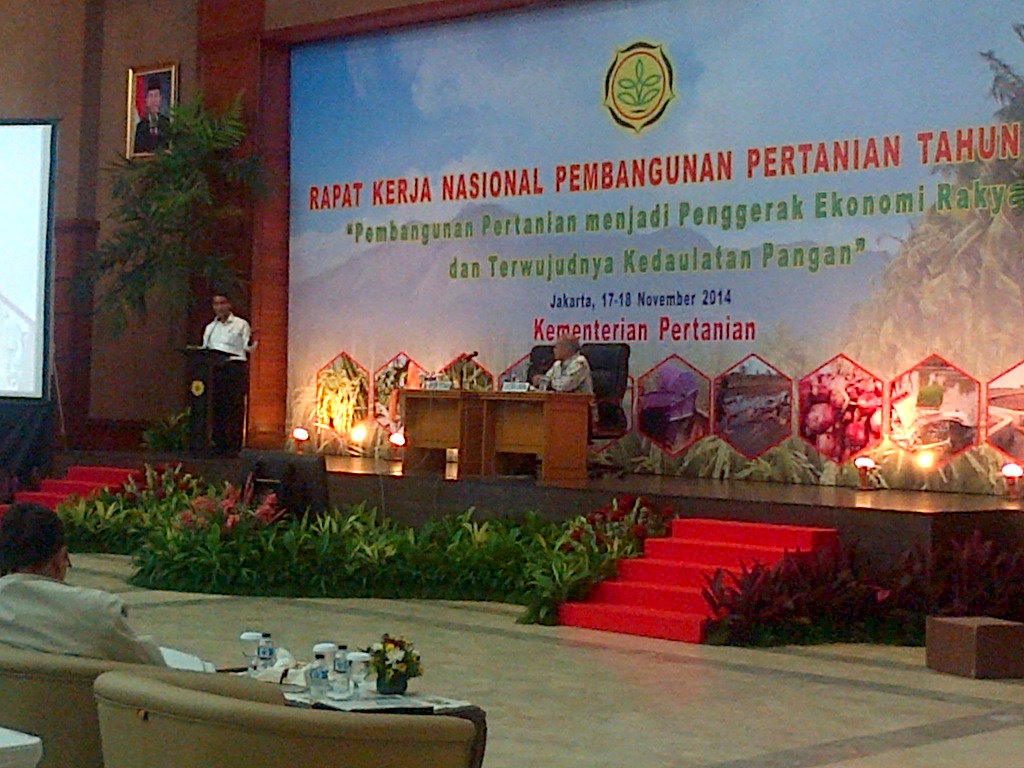 “Kementerian Pertanian siap memenuhi target yang diminta Presiden Joko Widodo dengan melakukan akselerasi,” tandas mentan, usai memberikan sambutan di hadapan Kepala Dinas /Badan lingkup pertanian provinsi dalam agenda Rapat Kerja Nasional (Rakernas) Pembangunan Pertanian Tahun 2014 di Kementerian Pertanian, Senin (17/11).