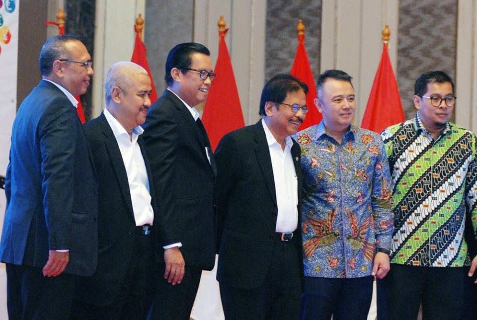 JAKARTA (Pos Sore.com) – Menteri Agraria dan Tata Ruang (ATR)/Badan Pertanahan Nasional (BPN) Sofyan A Djalil didampingi Sekretaris Jenderal Kementerian ATR/BPN, Himawan Arief Sugoto, Direktur Jenderal (Dirjen) Hubungan Hukum Pertanahan Kementerian ATR/BPN, Suyus Windayana, Kepala Pusat Data dan Informasi (Kapusdatin), Virgo Eresta Jaya, Plt.Direktur Utama (Dirut) Bank Tabungan Negara (BTN) Oni Febriarto Rahardjo, Ketua Real Estate Indonesia (REI), Soelaeman Soemawinata, Ketua Ikatan Pejabat Pembuat Akta Tanah (IPPAT), Julius Purnawan meluncurkan layanan elektronik berupa hak tanggungan di Jakarta, Rabu (4/9/2019). Produk layanan elektronik hak tanggungan ini turut menggandeng perbankan untuk mempermudah masyarakat yg memanfaatkan fasilitas KPR. Bank BTN menjadi pilot project dalam layanan ini dengan telah didaftarkannya hak tanggungan yang dimiliki oleh perseroan senilai Rp26 Triliun. B. Tri Prasetyo