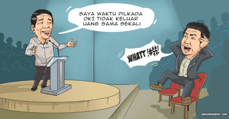 Apa ada yang salah dengan ucapan Jokowi? Jokowi tak sepenuhnya salah. Benar dia tak mengeluarkan uang sepeserpun dari kantongnya sendiri. Hashimlah yang mengeluarkan dana ratusan miliar untuk membiayainya, atas permintaannya.